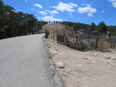 Con ciertas dificultades para descolgarnos entre los pinos y algunos escalones que se nos van presentando, conseguimos, no sin cierto alivio, alcanzar la pista. Es la llamada Carretera de la República y forma parte de un proyecto para enlazar las dos vertientes madrileña y segoviana por carretera. Parte del paraje de las Dehesas de Cercedilla y termina en el Puerto de la Fonfría, salvando más de 600 metros de desnivel. El proyecto de carretera fue abortado tras la Guerra Civil y hoy solo permanece la pista que es utilizada por caminantes y ciclistas.