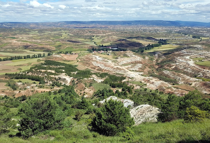 Poco a poco vamos cambiando de vertiente y comenzamos a ver de nuevo los llanos del Valle de Tabladillo, desde donde hemos partido. A la derecha tenemos de nuevo la vista de la Sierra de Tejada y el Valdosa, referencias visuales de esta comarca.